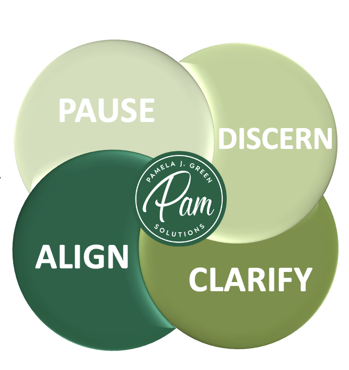 • Reflection prompts aligned with the Pause, Discern, Clarity, and Aligned Action model